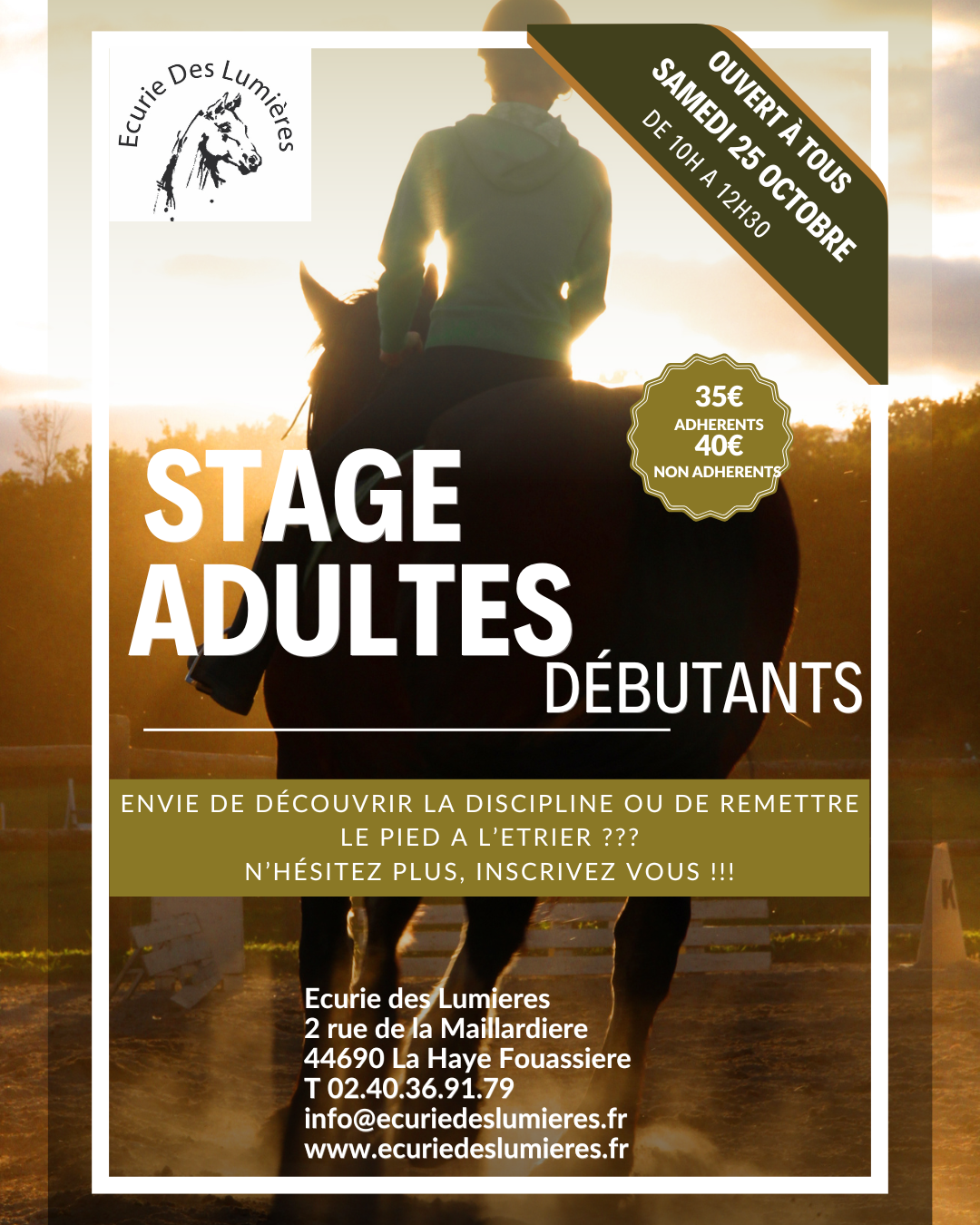 Stage d’équitation pour adultes à l’écurie des lumières